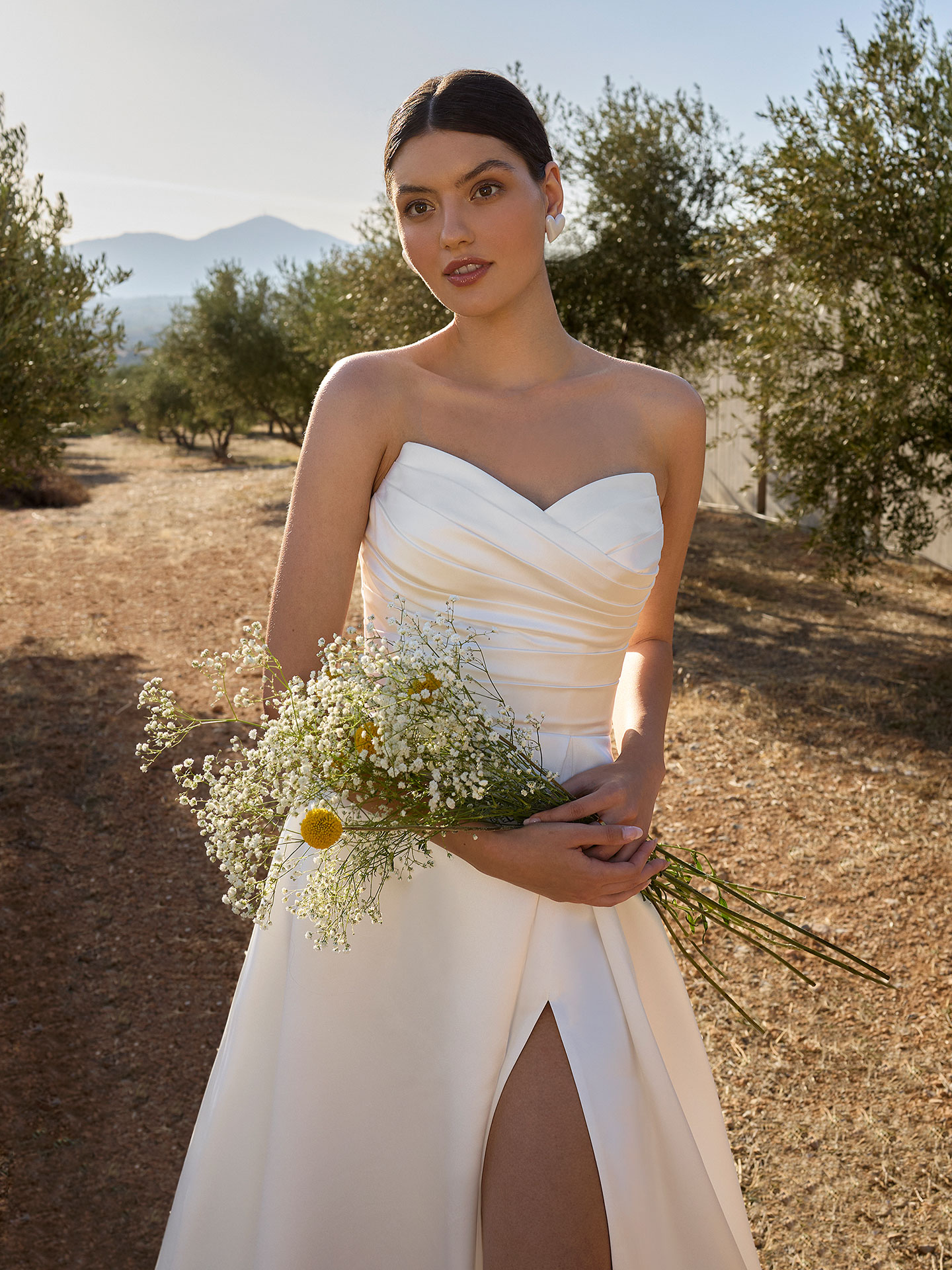 La collezione sposa Demetrios incarna audacia, modernità e divinità. Gli abiti irradiano un glam morbido con una raffinata eleganza chic e sexy. Dai leggeri abiti svasati ai sensuali abiti da ballo da principessa, fino alle provocanti silhouette aderenti, è impossibile non innamorarsi di questa lussuosa linea. Ogni abito riflette romanticità, con petali ricamati, dettagli floreali, trasparenze, spalline delicate e profondi scolli a V. I modelli abbracciano tendenze contemporanee, mantenendo un tono tradizionale con pizzi e dettagli effetto tattoo, dettagli increspati in vita, ricami nelle maniche e schiene intriganti.